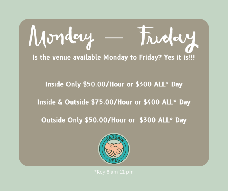 The venue is perfect for small, intimate gatherings, meetings, or celebrations, and can accommodate up to 100+ guests.